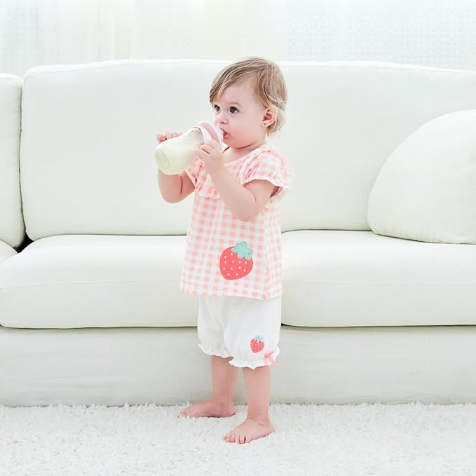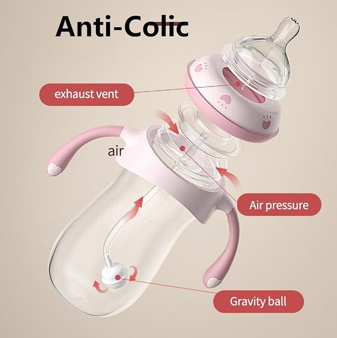 Baby Bottles, Weighted Straw Toddler Milk Bottles with Non-Slip Handle, Size + Variable Fast Flow, 12+ Months, BPA-Free, Pink/1Pack/9oz