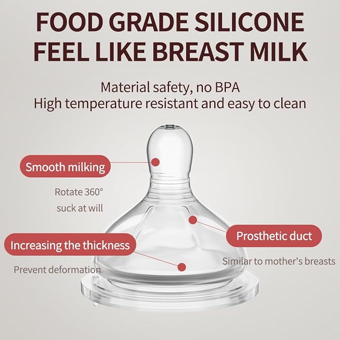- Breast-Like Nipple — Made from food-grade silicone, it is BPA-free, flexible, soft, and free-flowing. It works like a mom's breast and encourages newborns to latch naturally.