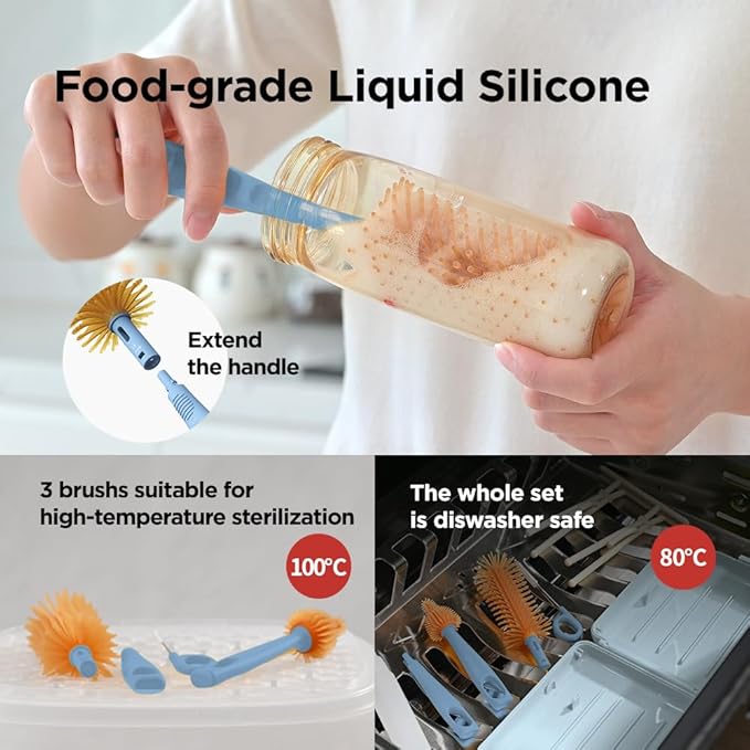 - Gentle yet Effective Cleaning: Silicone bristles scrub bottles, nipples and straws without scratching or damaging delicate components while removing stubborn stains and residue.