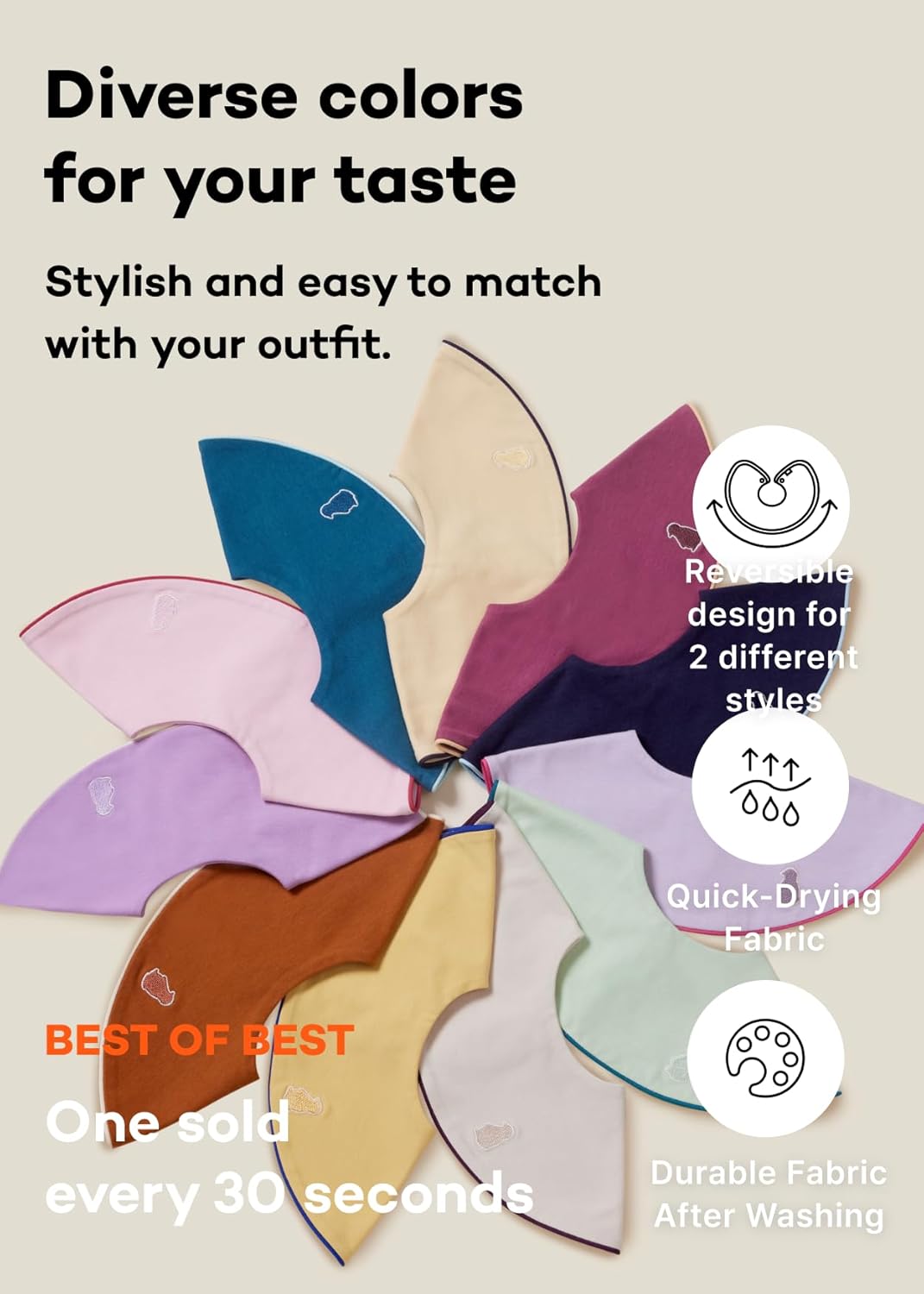 - 360° Double-Sided, Reversible Design : Featuring an effortless snap button for easy wear and a rotatable design for seamless adjustment. The reversible design offers two distinct wearing styles, enabling you to switch when one side becomes wet.