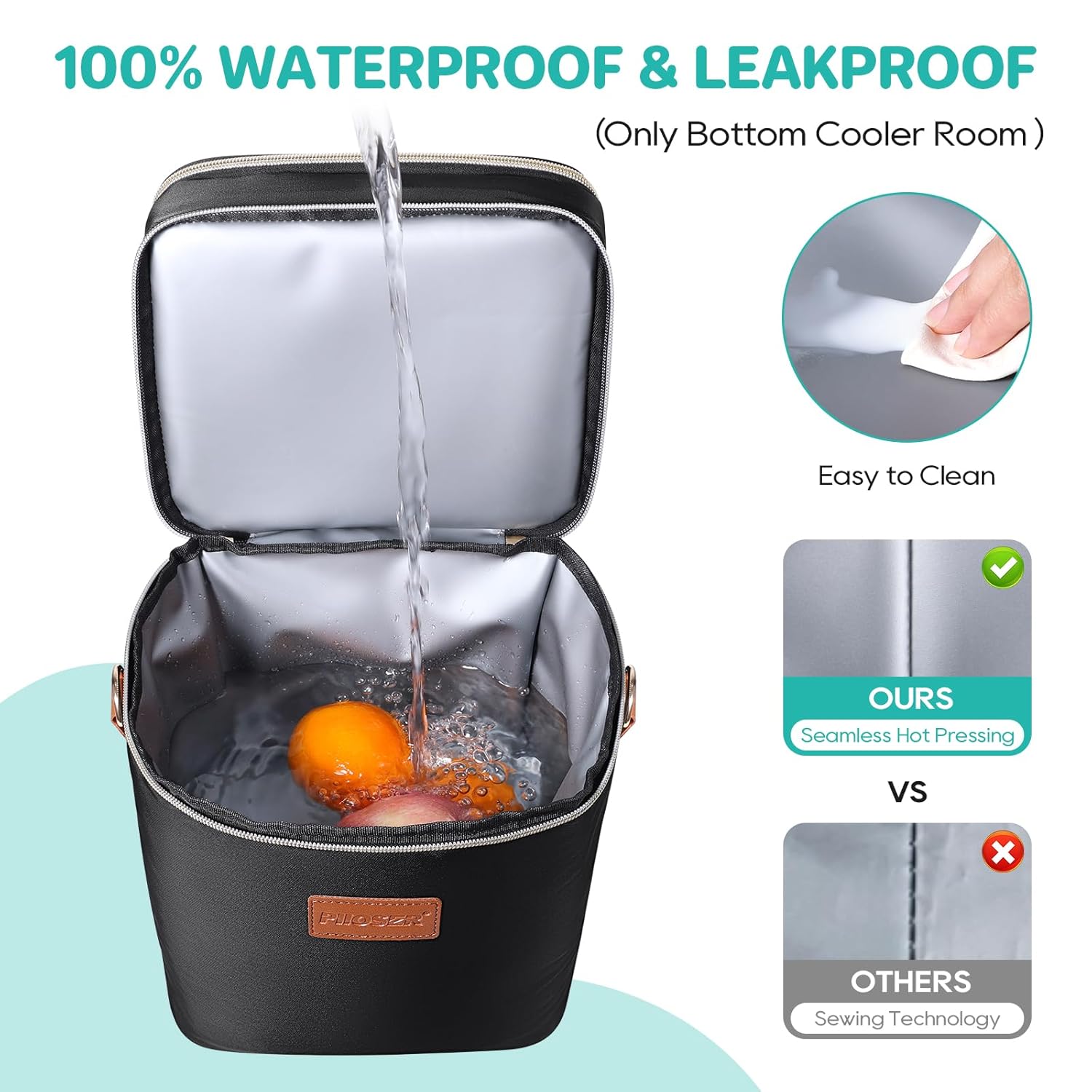 - 100% WATERPROOF & LEAKPROOF: Our food-grade EVA insulated liner adopts hot-pressing technology for 100% waterproof and leak-proof, and 5mm thickened foam keeps cold for up to 20 hours(with ice packs). It's easy to clean the water or milk stains and just need a towel or damp paper towel.