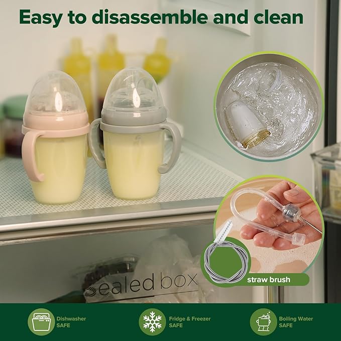 - See-through silicone: The transparent material and easy-to-read measurements enhance visibility for mixing and portion control. Babies can see what is inside the Baby Water Bottle, reducing anxiety associated with drinking from a Baby Water Cup with an unknown liquid.