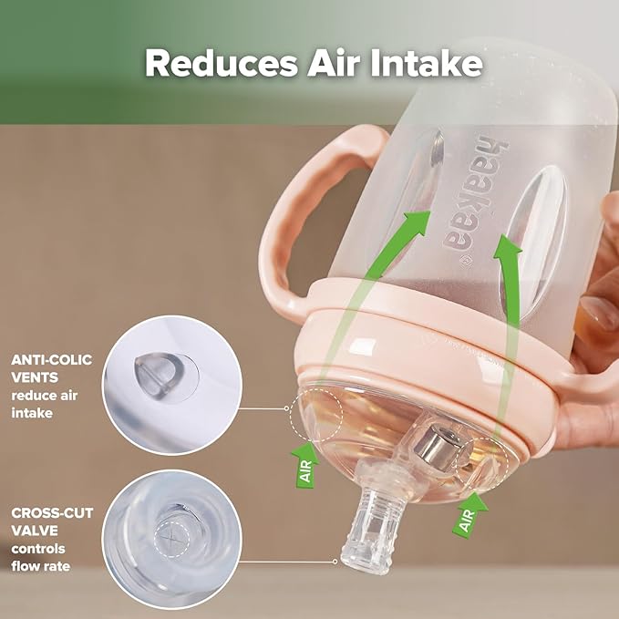 - Haakaa's design: 360° for easy sipping - a flexible stainless steel Haakaa weighted straw allows your baby to drink without tipping their head back. The leak-proof design helps prevent spills and reduces cleaning hassle. The wide Haakaa Bottle base adds stability, while the non-slip handle makes it easy to hold for tiny hands and facilitates successful movements to the mouth, encouraging the transition from bottle to open cup.
