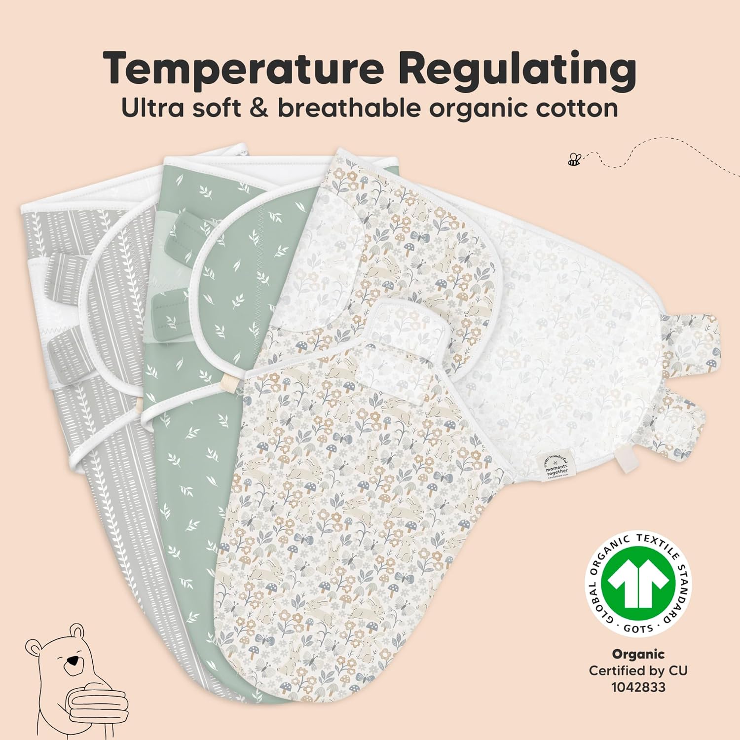 - Breathable & Temperature-regulating - Our Soothe Swaddle for newborns is made with ultra-soft Organic Cotton (GOTS Certified by CU 1042833), it is lightweight and highly breathable which makes it a highly-raved newborn swaddle sack for all seasons.