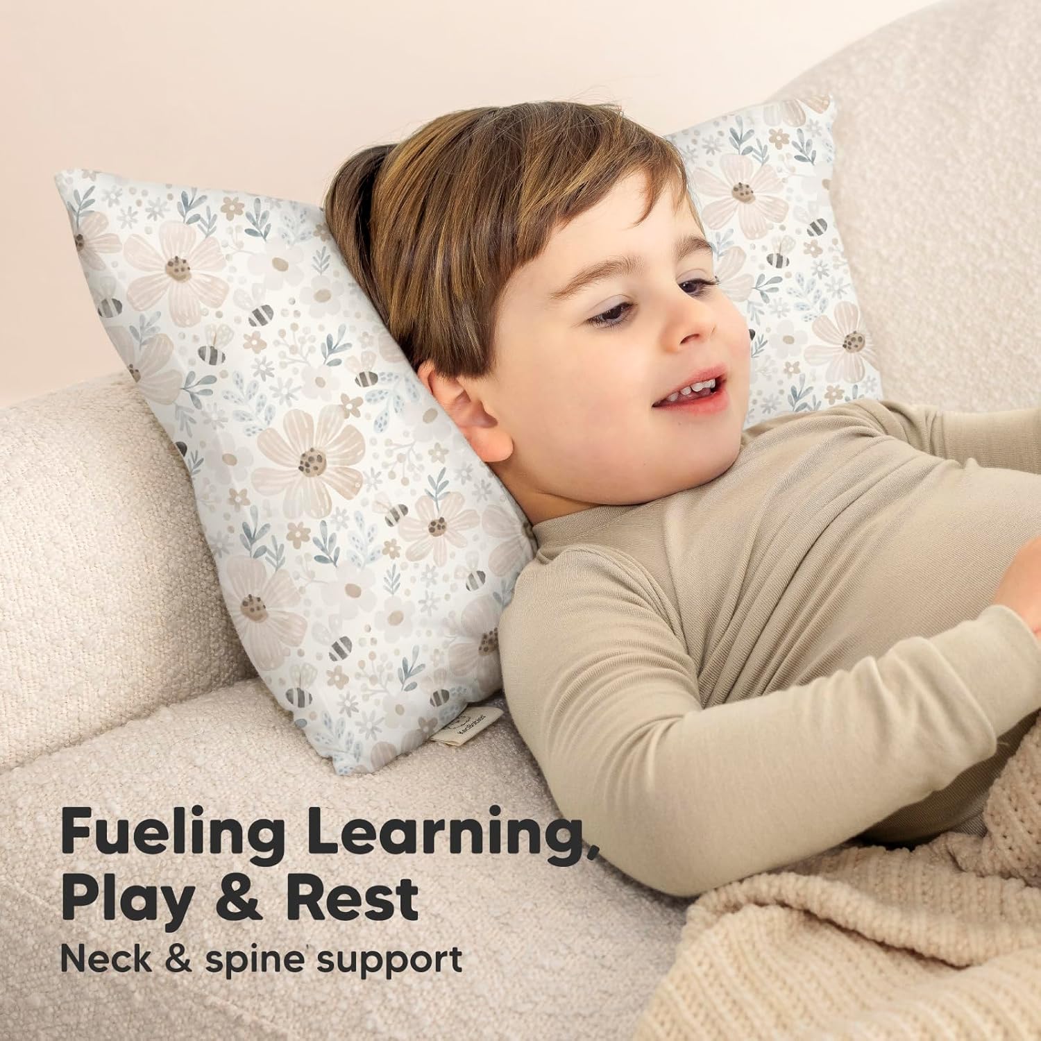 Toddler Pillow with Pillowcase - 13x18 My Little Cuddly Pillow, Viscose Derived From Bamboo Nursery Toddler Pillows for Sleeping,Kids Pillow,Small Travel Pillows,Mini Toddler Bed Pillow (Flora Vale)