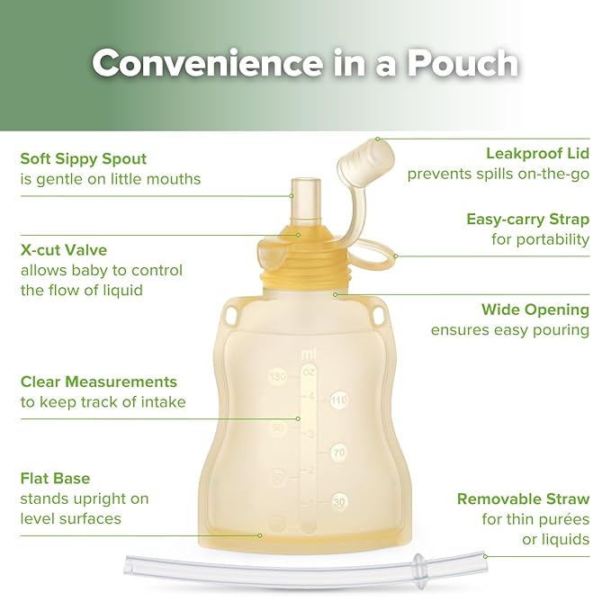 - ππππππππππ ππππ -π ππππππ:Each of these reusable pouches for toddlers and babies includes a variable flow opening for safe, self-paced feeding. Soft silicone spout is gentle on mouths, easing the transition to solids.