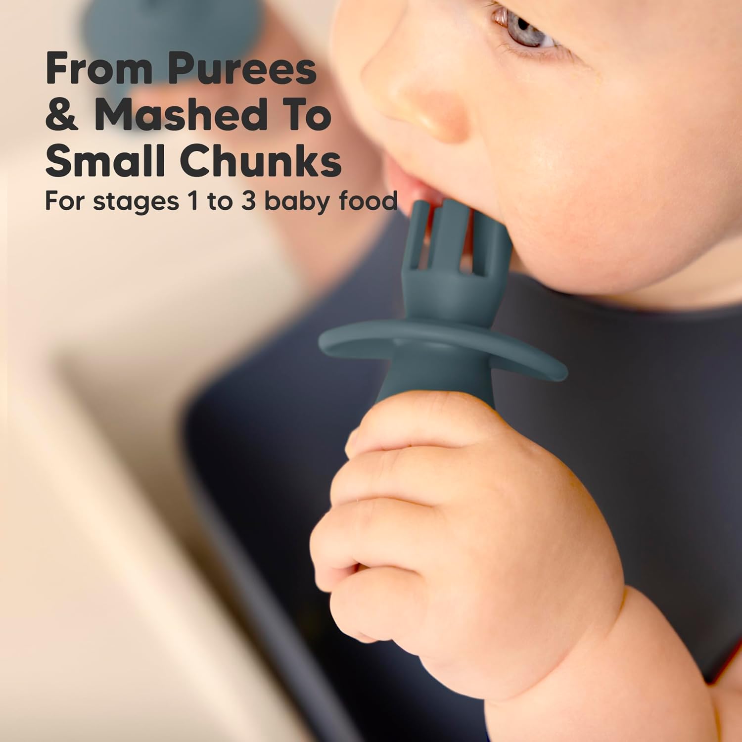 - Safer Silicone - Our 4-pack KeaBabies Lil' Prep Silicone Baby Spoon and Fork Set is made with 100% pure food-grade, BPA-free premium soft silicone. The sturdy and durable construction is crafted for infant teething gums & perfect for baby first food.