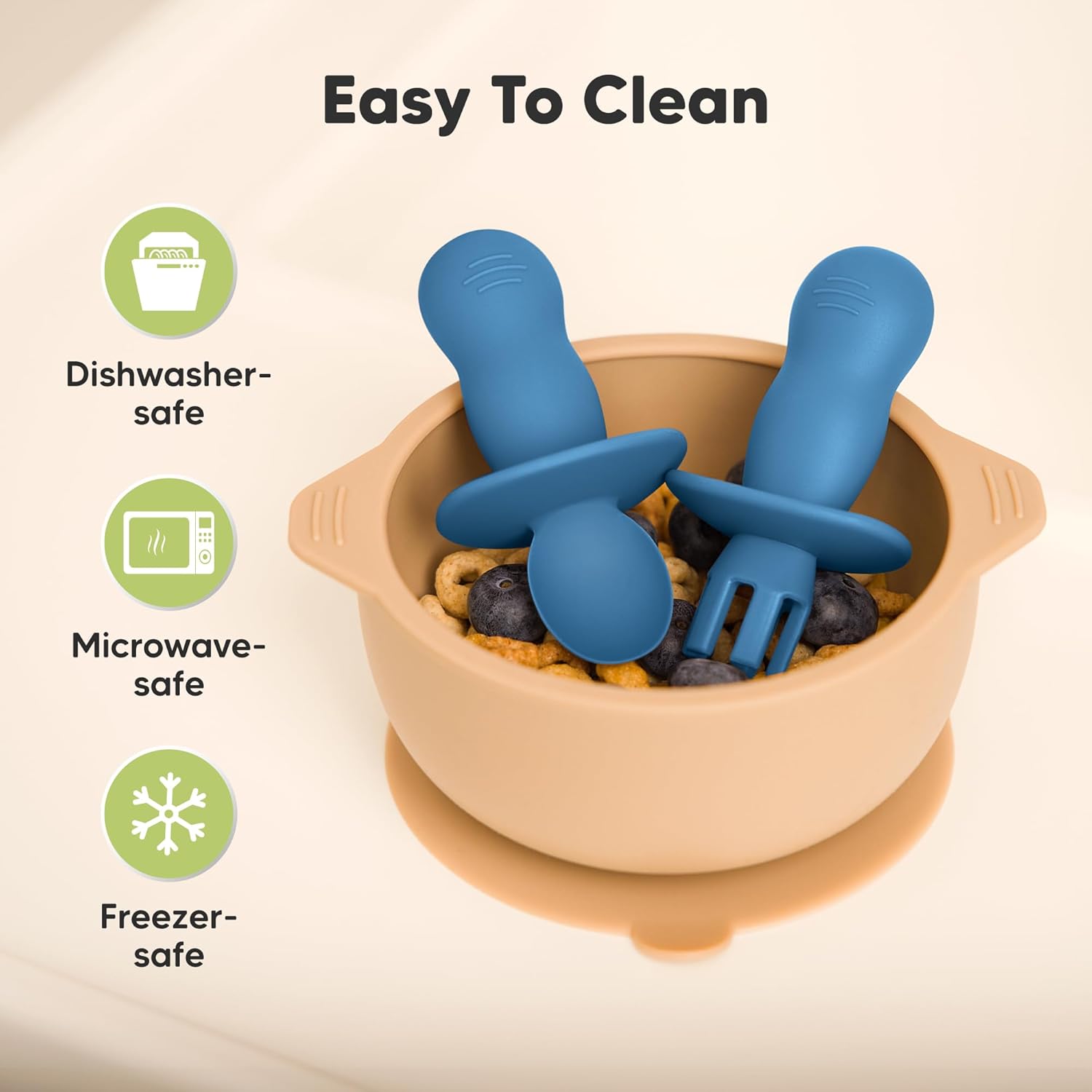 - Easy To Clean - Simplify cleaning with our baby silicone spoons and forks. These feeding baby utensils for 6-12 months are dishwasher-safe and easy to clean with soap and water. Make every meal quick and hassle-free with these baby spoons and forks.