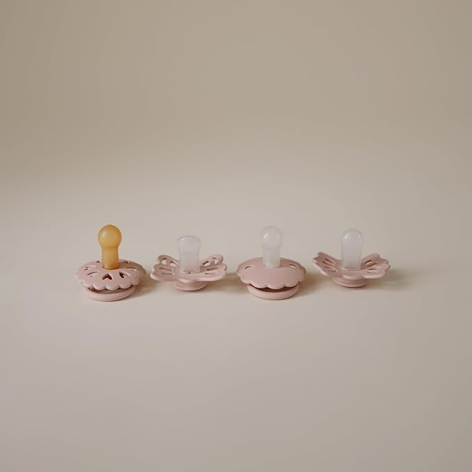 FRIGG Baby's First Pacifier Set | Floral Heart 4-Pack | Made in Denmark | BPA-Free (Blush, 0-6 Months)