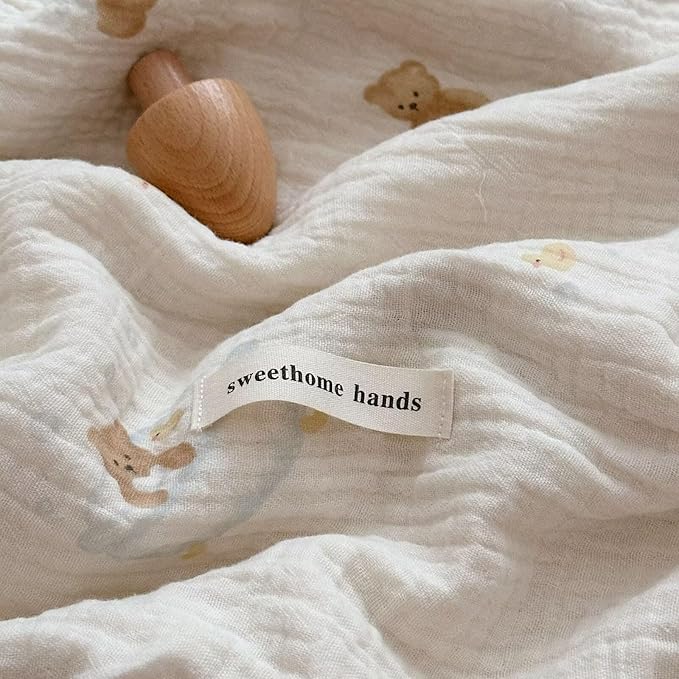 BuLuTu Muslin Cotton Girls Boys Pillow Case Standard Size, Cute Bear Children Pillowcase Neutral Baby Kids Pillow Cover Envelope Closure, 1 Piece, Bedding Decor, Machine Washable