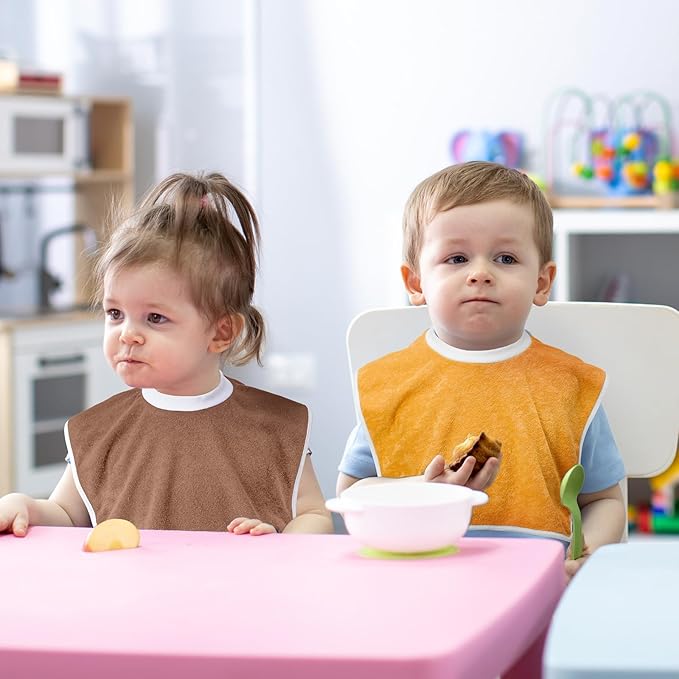 - Soft and Skin Friendly: this full coverage bib for baby is made of terry cotton material, which is soft, breathable and absorbent, not only can effectively prevent the baby's clothes from wetting when teething, eating and drooling, but also keep warm and avoid colds