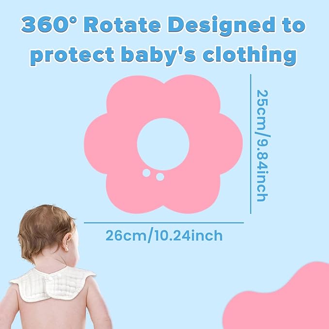 - Petal-Shaped & 360° Rotatable: Adorably designed in a petal shape, this bib rotates 360° for all-around protection—keeping your baby dry and clean in style
