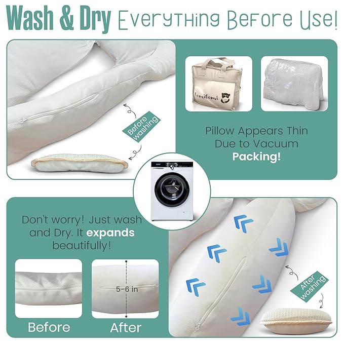 - EFFORTLESS MAINTENACE; Removable cover is machine washable for easy cleaning. Pillow restores original volume after washing and drying. Vacuum-packed for safe shipping: may appear flat initially, expands after wash or time.