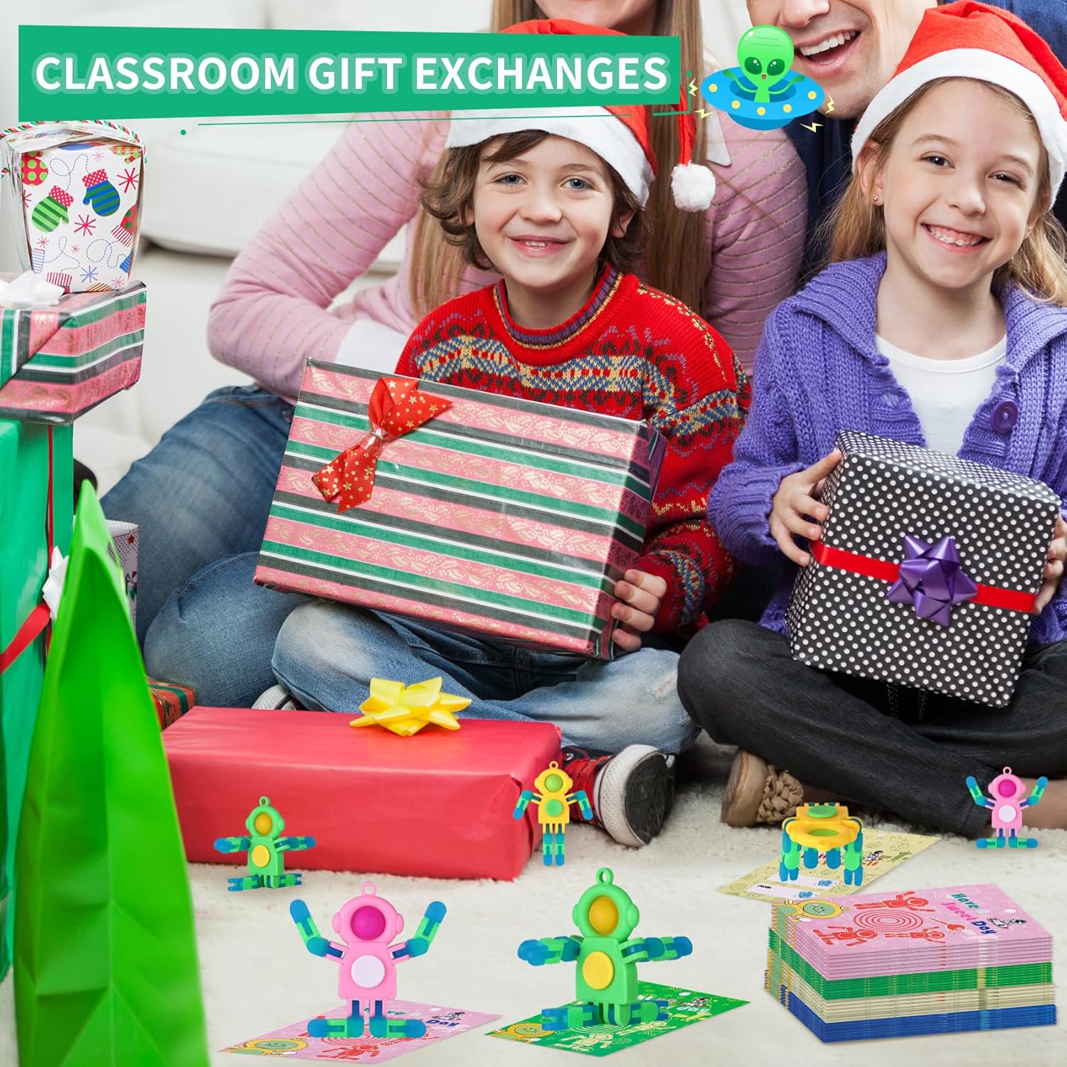 24Pcs Pop Fidget Spinners Bulk - DIY Deformable Astronaut Fingertip Toys with Cards Keychain Fidget Spinners Glow in The Dark Party Favors Sensory Toys Bulk for Kids Adults Classroom Prizes