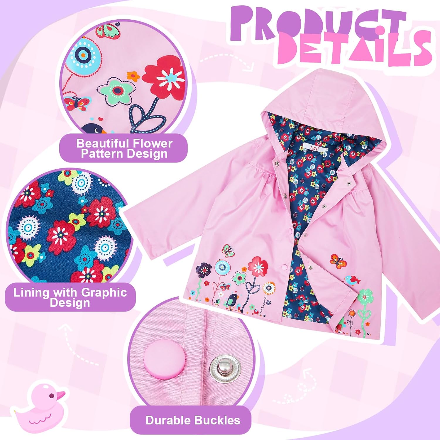- Adorable Design and Color: our pink raincoat has a lovable flower design that adds a cute touch; The raincoat is lovely and vivid, and will make your toddler gets excited about wearing their rain coat
