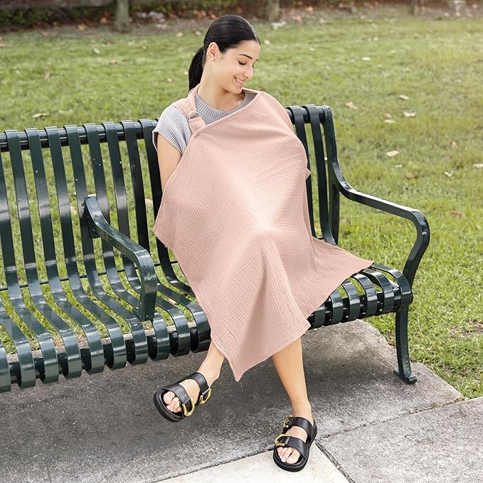 Comfy Cubs Muslin Nursing Cover, Pack of 1, 100% Muslin Breastfeeding Cover - Soft & Breathable Baby Nursing Scarf with Adjustable Neck Strap - Portable, Lightweight & Privacy Coverage - Blush