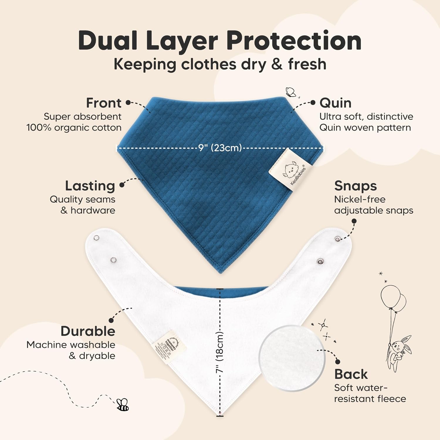 - 8-Pack Quin Bandana Bibs for Boys, Girls - Our organic baby bibs are exclusively designed by KeaBabies to ensure that your baby never runs out of styling options. Our drool bibs are easy to match, making them a fuss-free teething baby essential.