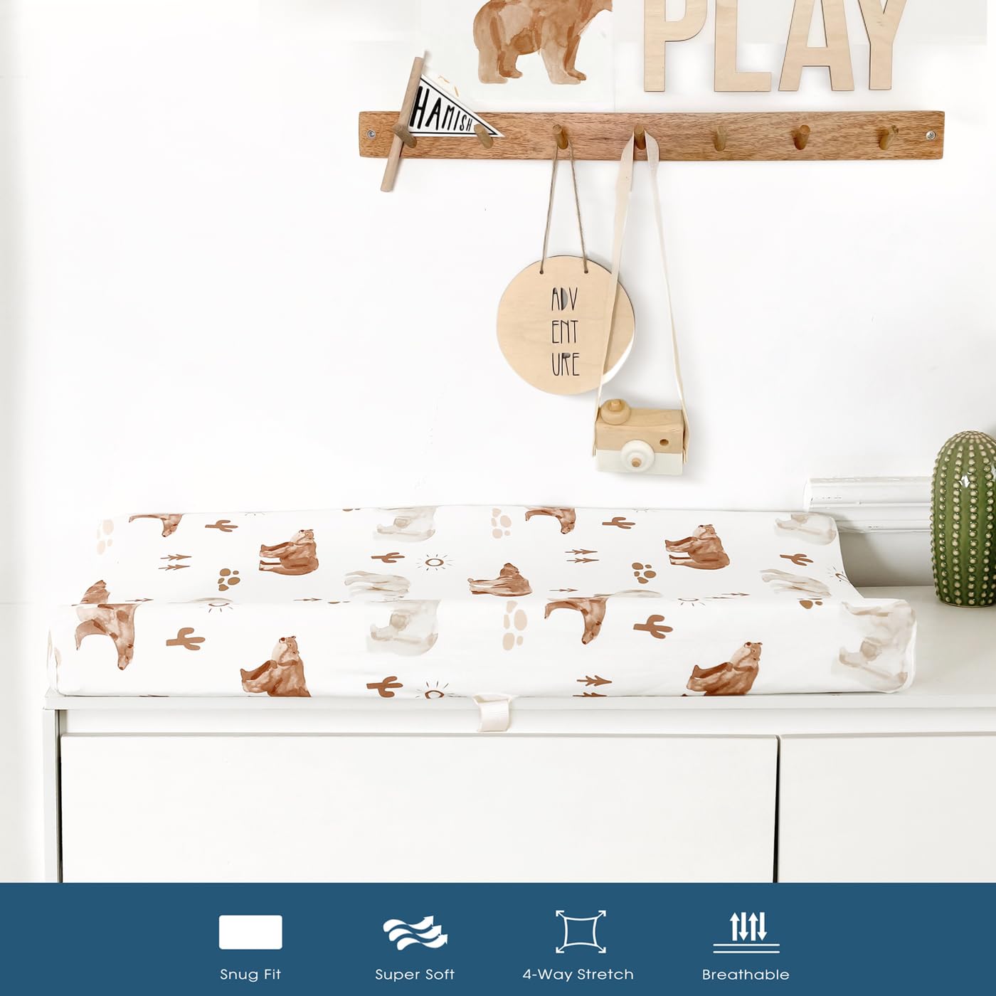 - Universal Fit – Measuring 32" x 16" x 5". Our changing pad covers come with an elastic band all around the sides to securely fit all standard changing pads. They are very easy to put in place even when you need to change sheet in a hurry. Perfect as a baby shower gift or for your own nursery.