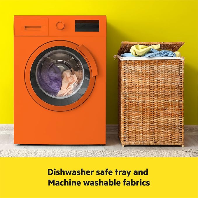 - Compact design easily folds to 5 x 15 inches; Easy to clean with dishwasher safe tray and machine washable seat pad; includes a rear storage pocket for little essentials