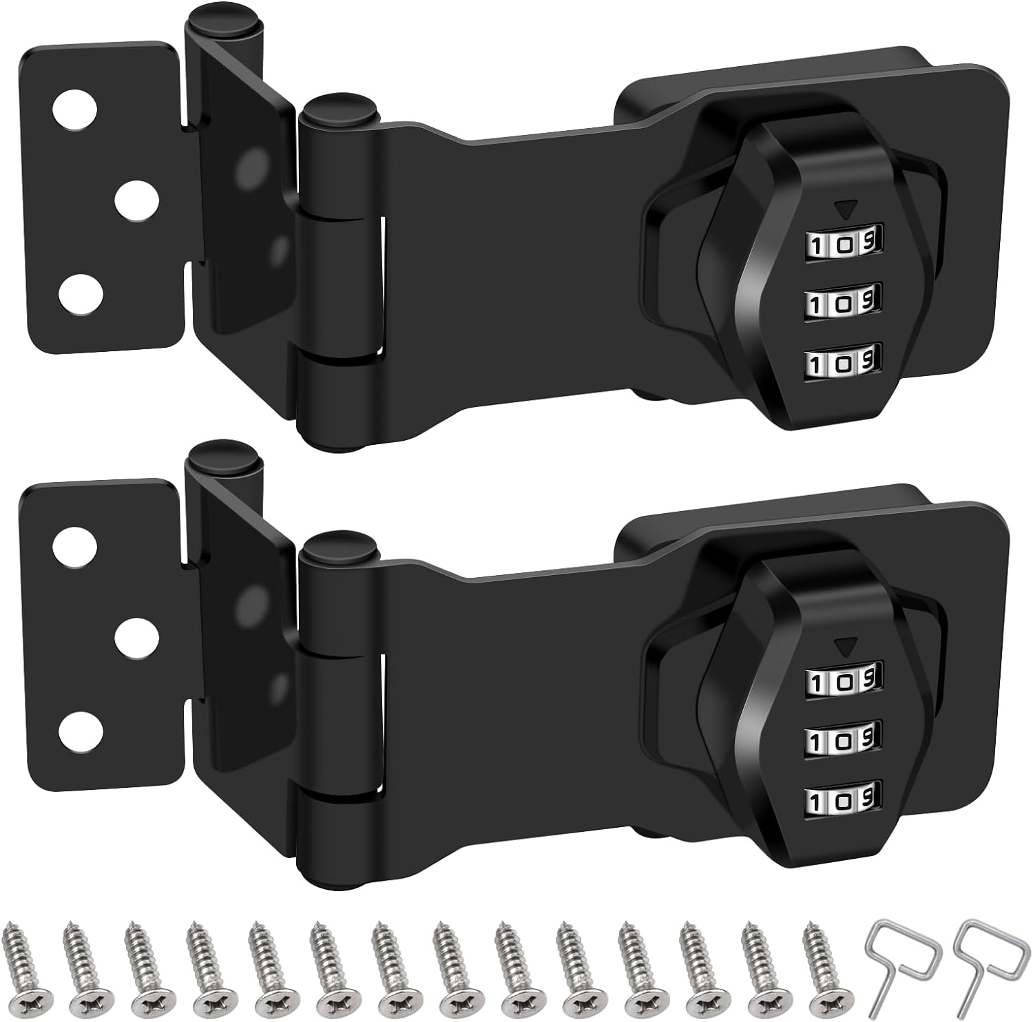 2 Pack Password Rotary Hasp Locks, Collapsible Solid 304 Stainless Steel File Cabinet Lock Desk Drawer Lock, for 90 Degree and 180 Degree Drawers, Dabinets, Doors, Flip Barn Door, Outdoor (Black)