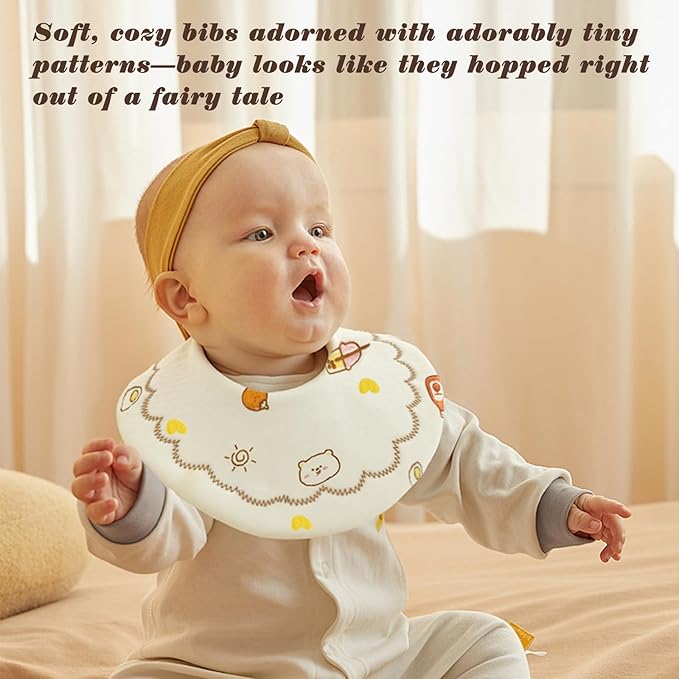 - Highly Absorbent Baby Bibs – Perfect for Drooling & Teething Thanks to their 6‑layer construction, these baby bibs are highly absorbent and ideal for drooling, nursing, or teething babies. Quick‑drying cotton helps keep your baby comfortable while making daily care simple (note: air drying recommended, as 100% cotton may shrink).