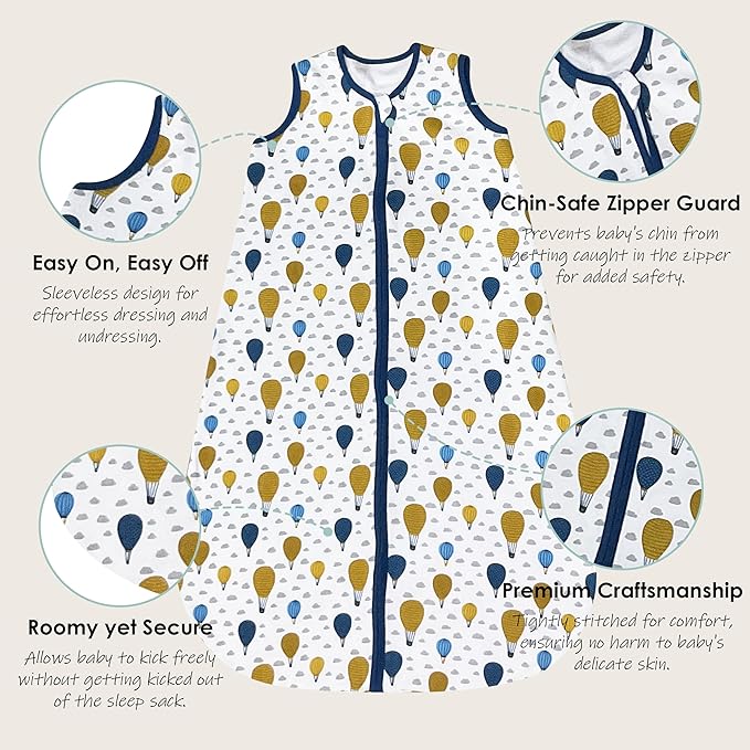 - Luxuriously Soft: Crafted from premium 100% cotton, our baby sleep sacks offer unparalleled comfort and breathability. The sleeveless design and optimal TOG rating of 0.5 ensure your baby stays warm and snug without the risk of overheating