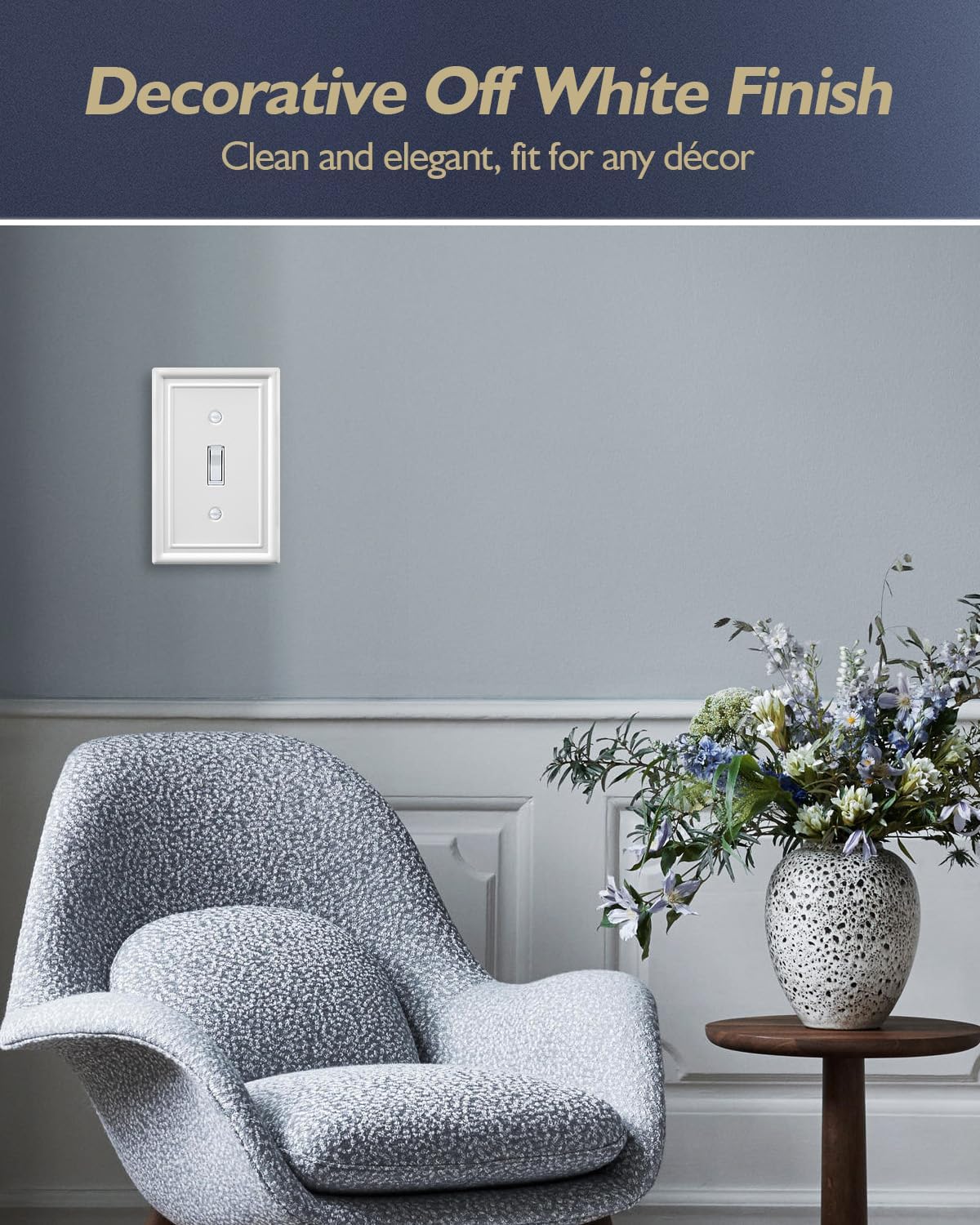 2-Pack Single Toggle Light Switch Cover Plate, Metal Switch Plate Covers, Off White Finish, 3.15''W*4.88''H, Midsize