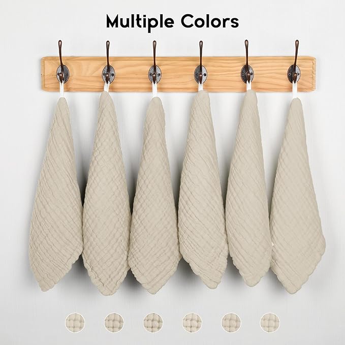 - Pratical Design: The 6 pack baby muslin washcloths are thoughtfully designed in a generous size of 12"x12", offering a perfect balance between functionality and portability. Lanyard design make it easy to hang or dry, avoid germs accumulating. Reinforced edges make the muslin washcloths can withstand repeated washing while retaining its shape.