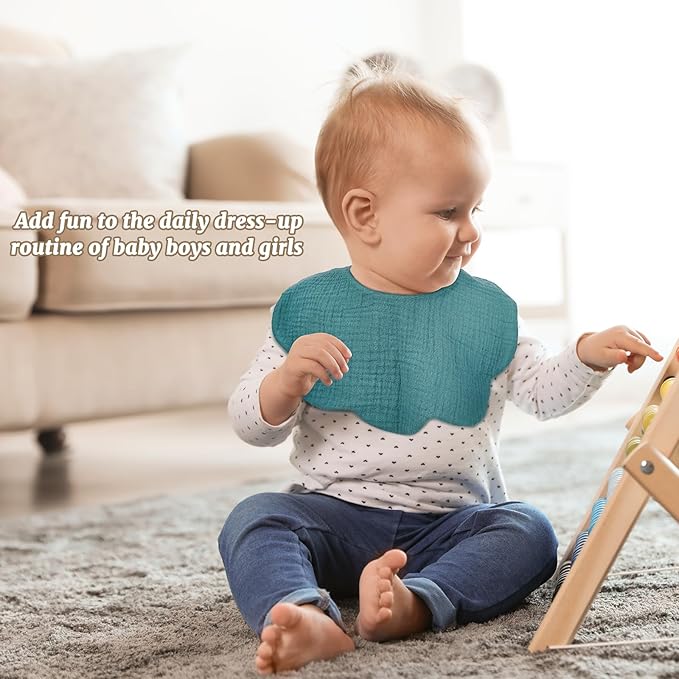 - Gentle Protection: Crafted from muslin cotton, these bibs provide a soft and breathable barrier against drool and spills; The double-layered design ensures excellent absorbency, keeping your baby's skin dry and irritation-free all day long