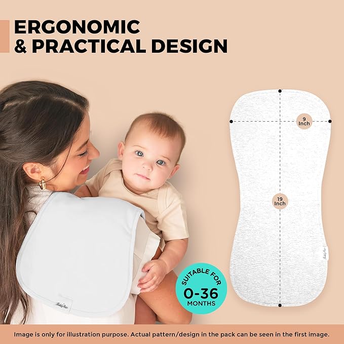 - ๐ EXTRA-LARGE COVERAGE, LESS MESS: Measuring 21 x 10 inches, each cloth provides generous shoulder and chest coverage to catch every drop of drool or spit-up. Whether you're feeding or burping, youโll stay clean and dryโno need for outfit changes mid-day.