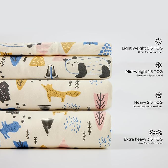 - 2.5 TOG WINTER SLEEP SACK - Our 2.5 tog sleep sack is filled with medium thick polyester fiber that provides enough warmth for cooler nights without causing overheating in warmer weather. A balance between insulation and breathability is key to ensuring baby's comfort throughout the year. Outer and inner lining are 100% premium cotton that is gentle on your baby's delicate skin