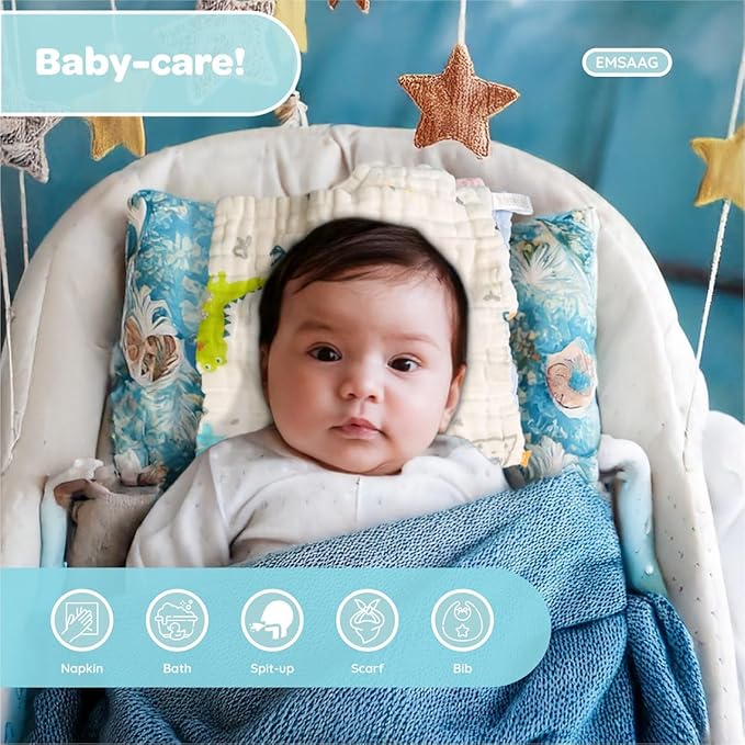 - Unisex color set: The package includes 7 Muslin Baby Washcloths and towels with special patterns suitable for both boys and girls. With carefully selected patterns, this unisex product easily matches any outfit and is suitable for both boys and girls! Our Muslin Baby Washcloths and towels can be hand or machine washed with cold water and mild detergent.