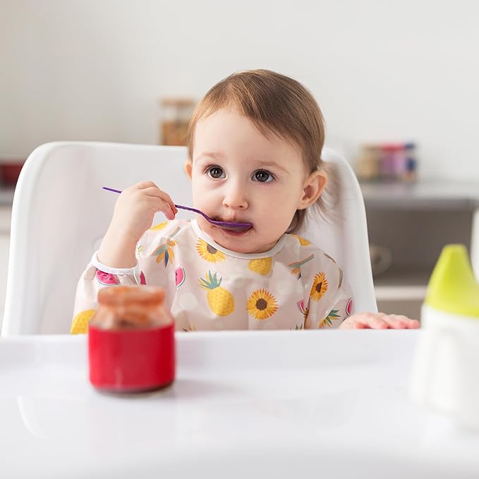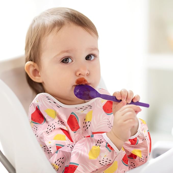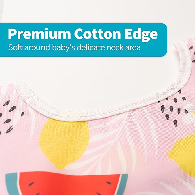 - 【Fully Waterproof】- Compose of premium lightweight PUL fabric, the entire sleeve bib is waterproof. Beside stain, oil, and odor resistance, our bibs are BPA-free, phthalate-free, PVC-free, vinyl-free, and lead-free.