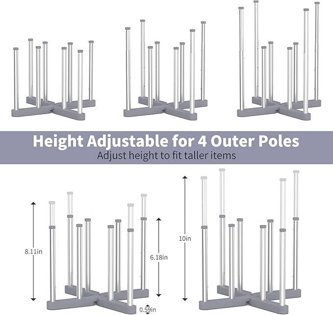 - 【Height Adjustable】 The bottle drying rack has 8 poles, the outer 4 poles are adjustable to two different heights, you can extend them to dry taller items.