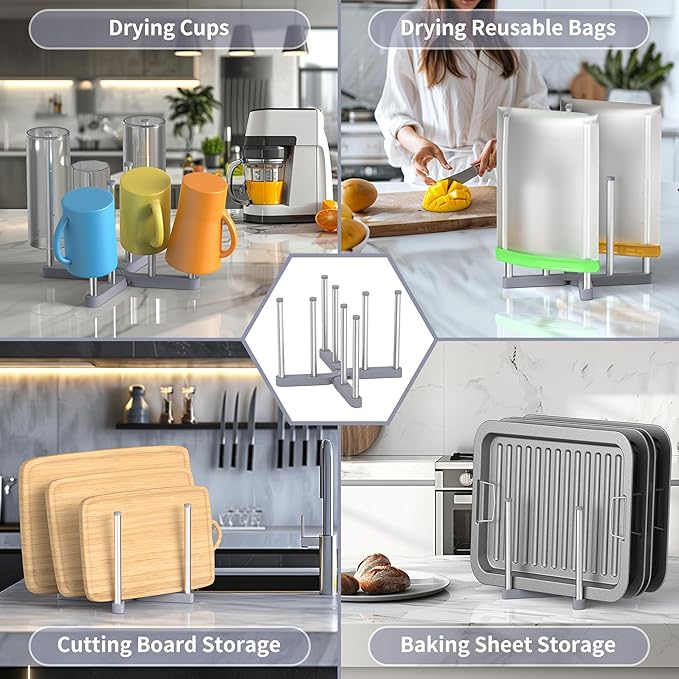 - 【Multi-functional】This collapsible drying rack is multi-purpose design, besides drying bottles, it can be also used as cup drying rack, water bottle drying rack, reusable bag drying rack, and can be even used to dry cutting boards, baking sheets, etc.