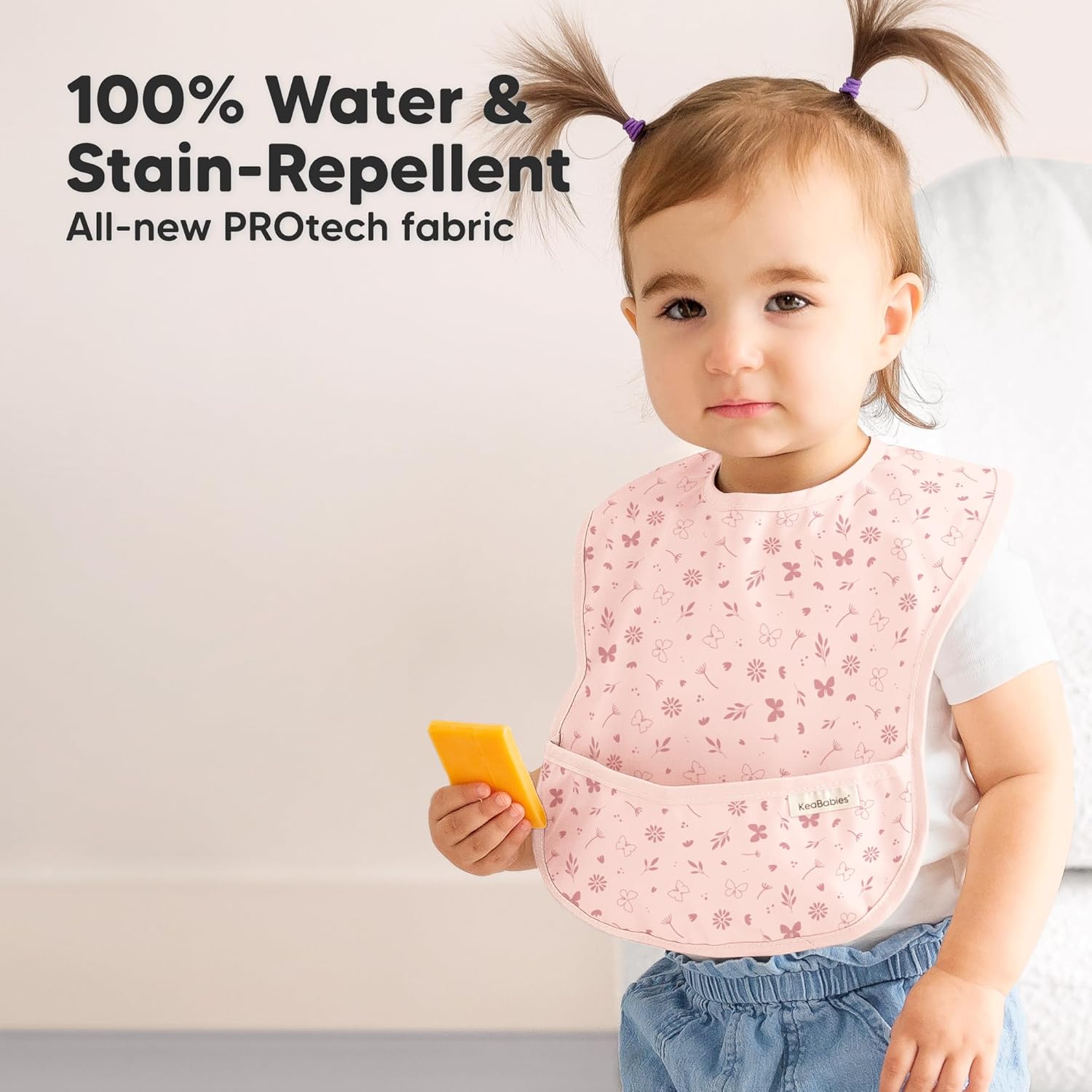 - New PROtech Fabric - Made with proprietary PROtech fabric, the KeaBabies Presto Baby Bibs for eating is reusable, 100% waterproof, and baby-safe certified. This fabric bib can be used as a baby apron, providing extra protection during mealtime.