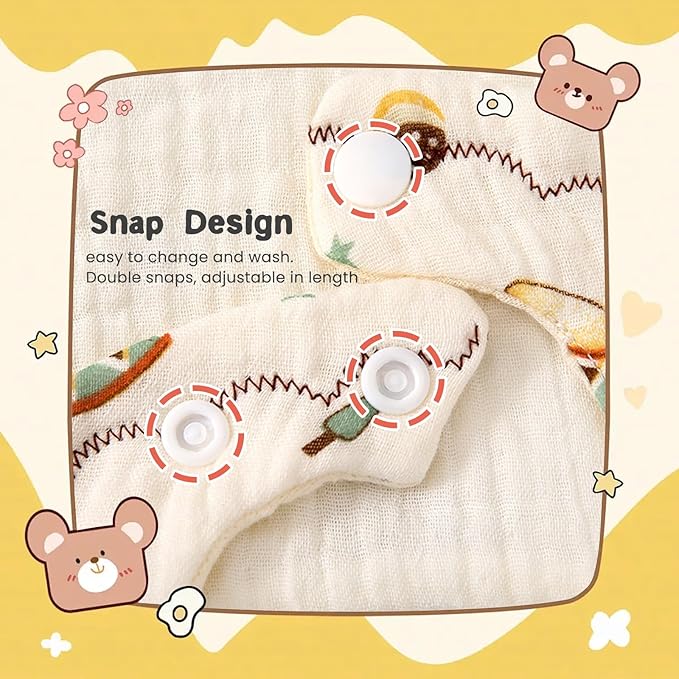 - Soft 6-Layer Muslin with Absorbency: Crafted from 100% breathable 6-layer muslin cotton, our bibs offer exceptional softness and rapid absorption for drool, spit-ups, and mealtime messes; Gentle enough for newborn skin yet durable for daily use