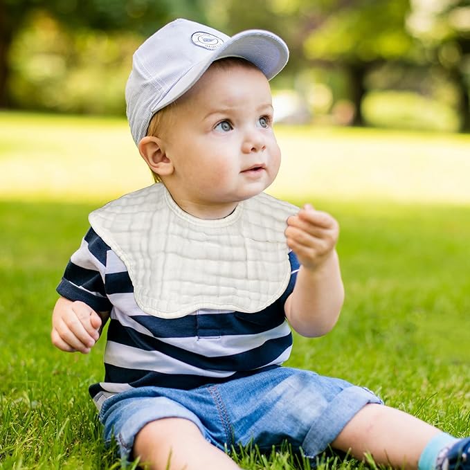 - Soft & Absorbent Muslin Cotton Drool Bibs: Made of breathable 100% muslin cotton, these bibs are ultra-soft, skin-friendly, and highly absorbent—perfect for teething or drooling babies
