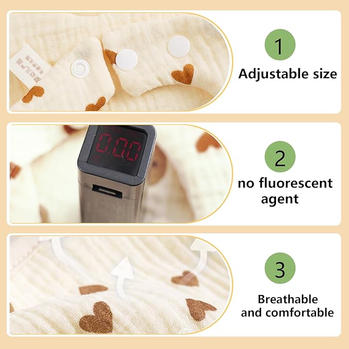 - Ultra-Soft & Absorbent: Made from 100% muslin cotton, these bibs are soft and gentle on your baby's delicate skin. The four-layer construction provides superior absorbency, soaking up drool, spit-up, and spills to keep your baby dry and comfortable throughout the day.