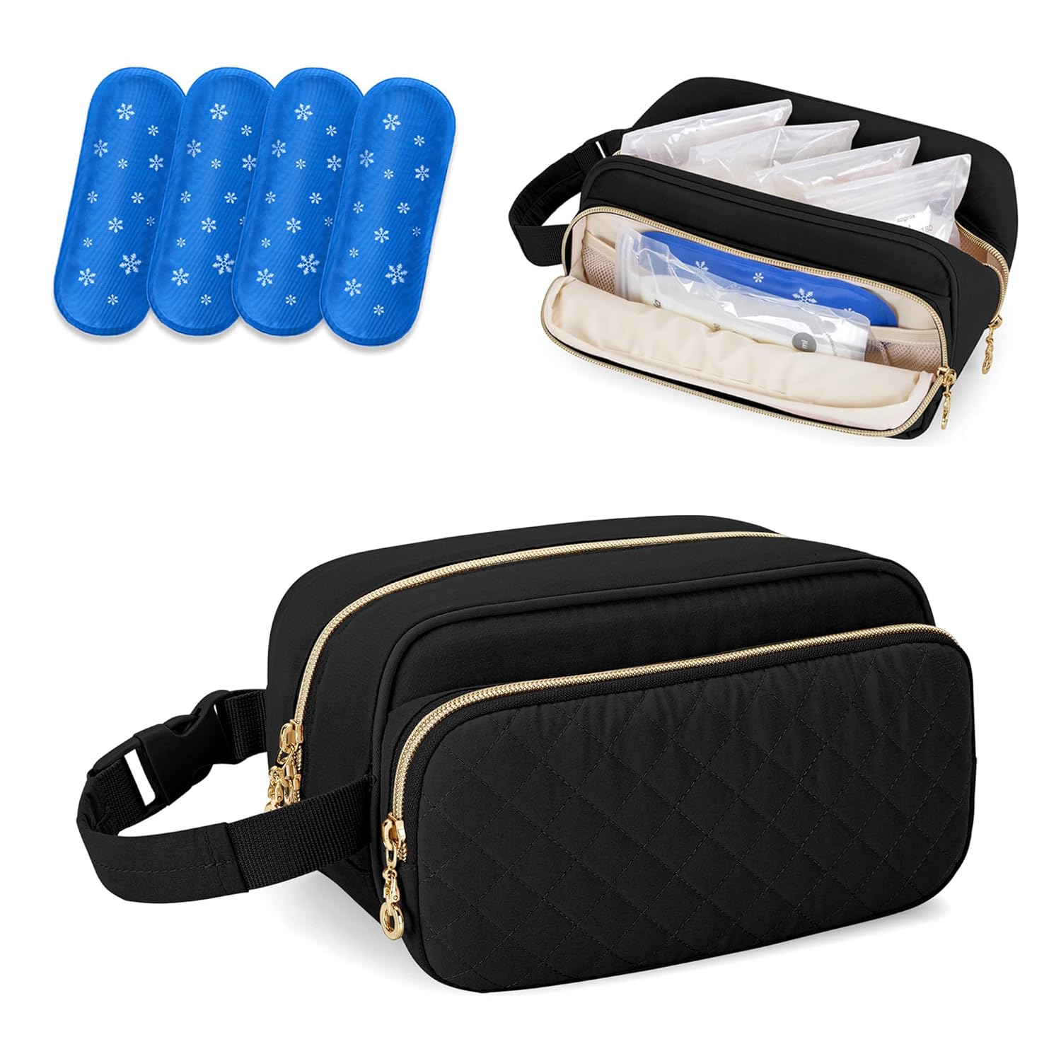 Damero Breastmilk Cooler Bag with 4 Ice Packs, Breast Milk Cooler Travel Bag Fit for Milk Bags or Bottles, with Buckle Handle for Breastfeeding Moms Travel/Daycare, Black