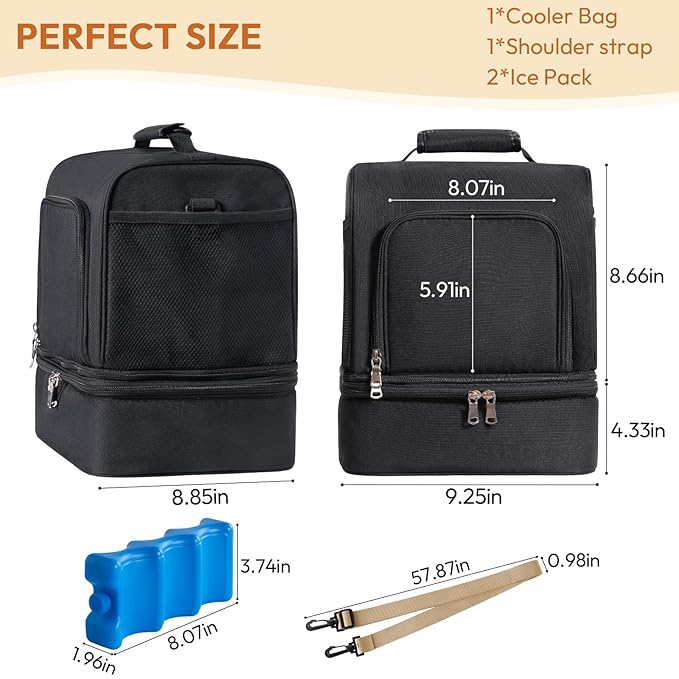 - Multi-Function: The size of the lunch/breast milk refrigerated bag is 9.25 "x 8.85" x 13 ". The bag is spacious enough to store up to six 5-ounce bottles and 7 storage bags. It is not only a breast pump bag, but also a lunch bag, picnic bag, suitable for various occasions such as day care, work, and trip
