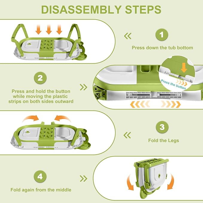 - 【Double-Fold Collapsible Design】Our upgraded baby bath tub can be effortlessly folded in just two steps to a thickness of under 4 inches. It even folds in half, enabling convenient storage in any corner, making it a space-saving solution.