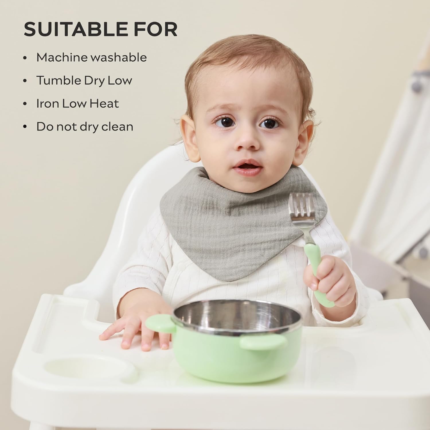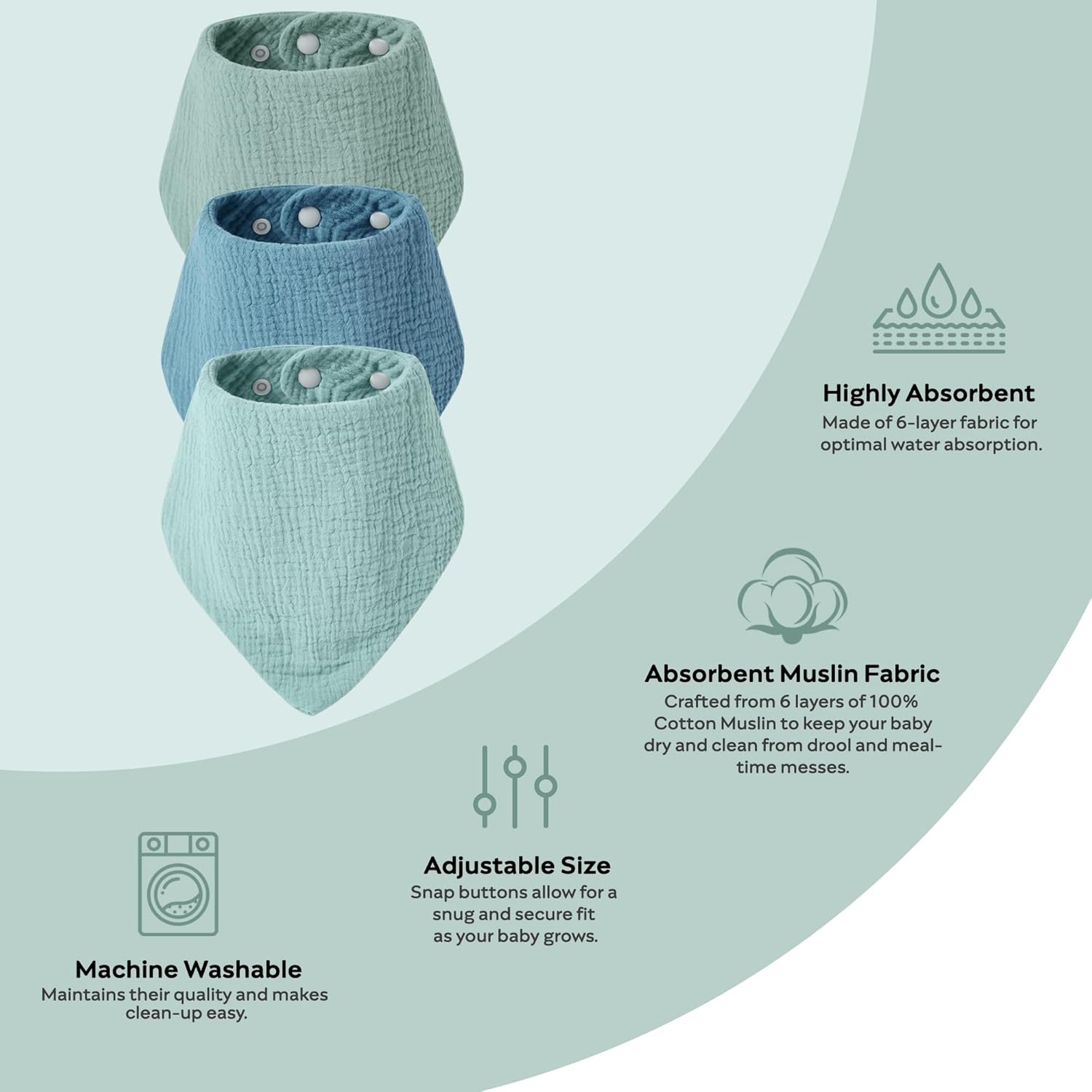 - Muslin Cotton Bandana Drool Bibs: Keep your baby protected from drools and spills with Muslin Cotton Bandana Drool Bibs. Made from 100% Cotton, soft and gentle muslin cotton, these bibs are comfortable and safe for your little one's delicate skin