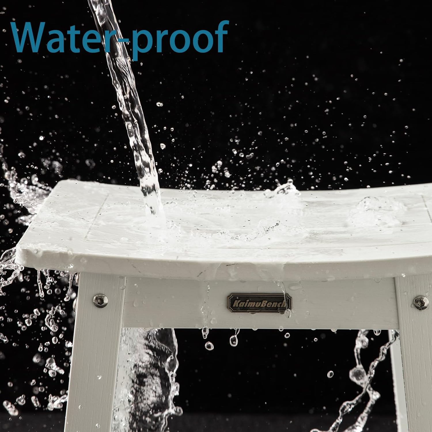 HDPS Shower Bench, White Plastic Shower Stool Seat for Shaving Legs, Spa Bath Seat, Heavy Duty Waterproof, Non-Slip, No Maintenance