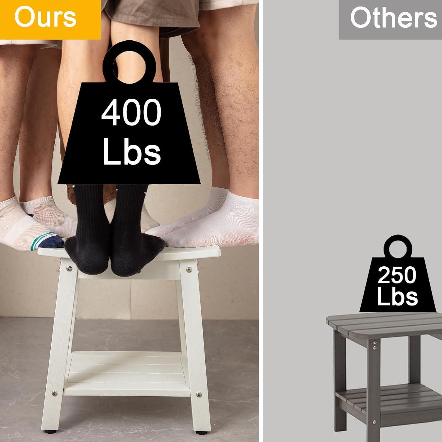 - ăMaterial & SizeăOur poly shower bench is made of HDPS (polystyrene) with 304 stainless screws which never gets rust, this material is not easy to get rotting or crack after prolonged exposure to humidity, no splinters and no maintenance, 16 x 12.6 x 17 Inches enough large to sit (THE MOST IMPORTANT IS NO MAINTENANCE)