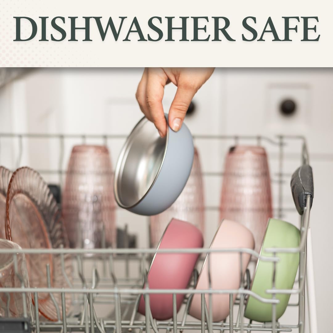 - STAINLESS STEEL: Bowls are made with Food Grade 304 18/8 Stainless Steel that is hygienic, easy to clean, durable, and non-toxic.