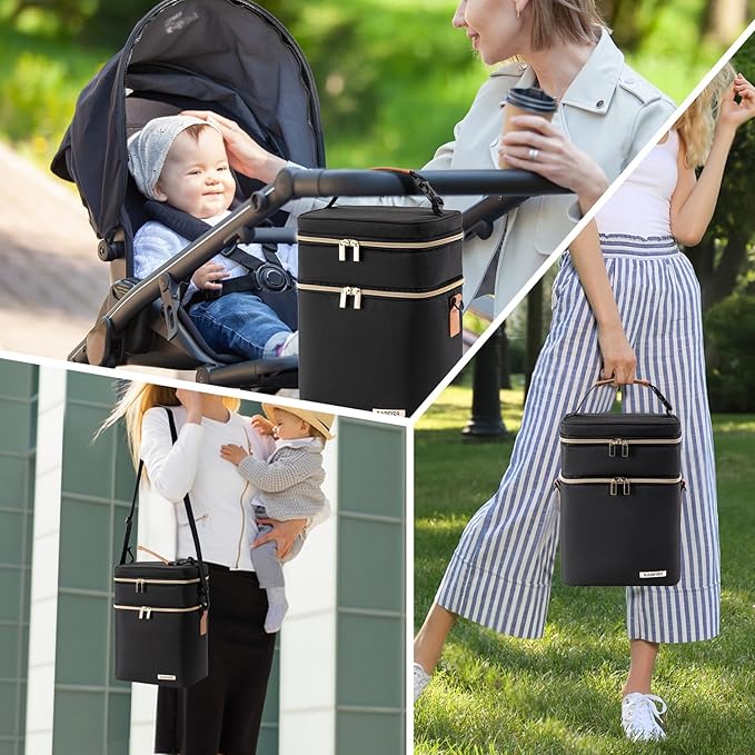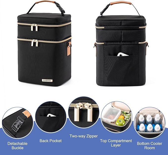 - Convenient Two-Layer Design: With its two-layer design, our breastmilk cooler bag offers maximum versatility. The upper layer is perfect for storing lunch boxes and food, while the lower layer can accommodate up to 6 bottles. Stay organized and keep everything in one place.
