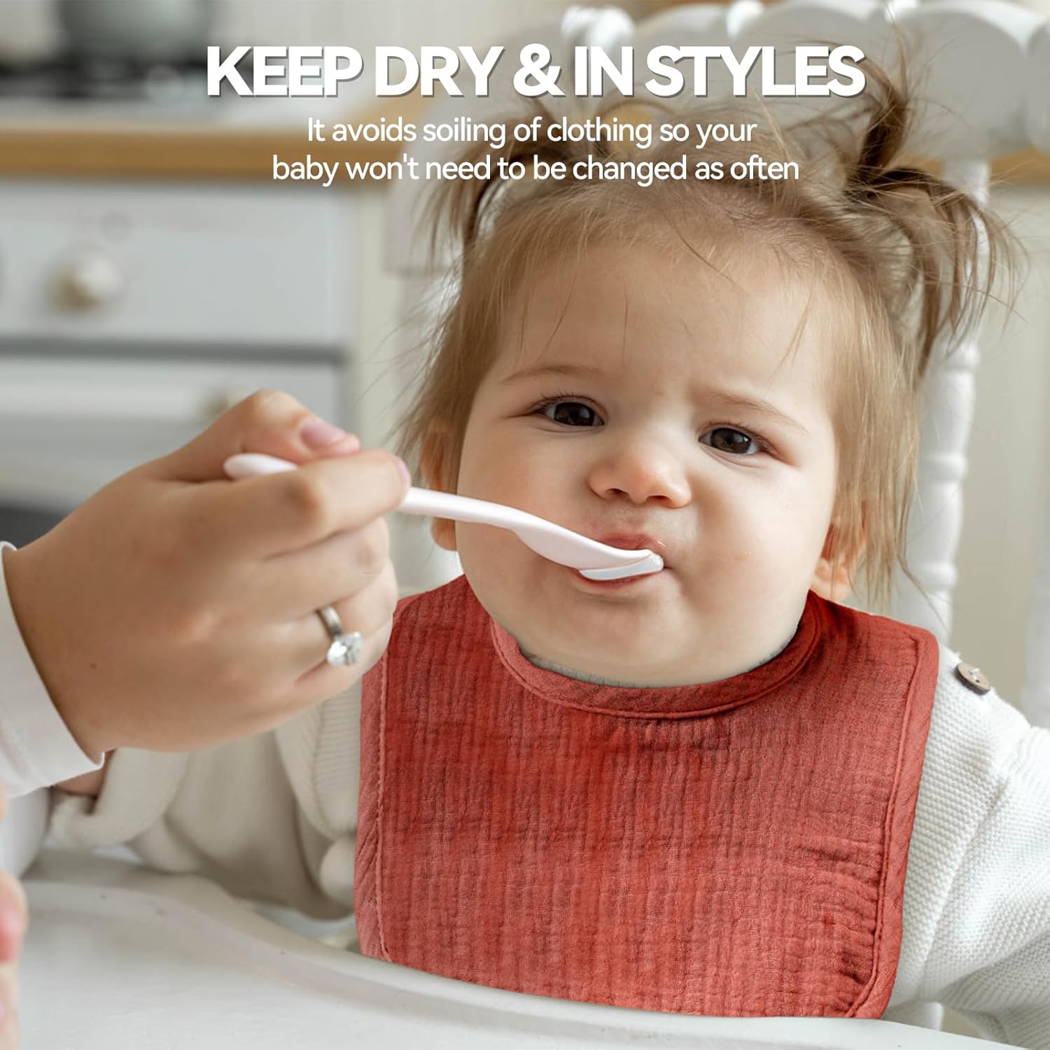- Set of 8 Unisex Colors: Our toddler muslin bibs for boys and girls are carefully selected neutral colors, suitable for both boys and girls, and can be easily matched with any outfit. You can choose newborn bibs that suit your baby's outfit for the day.
