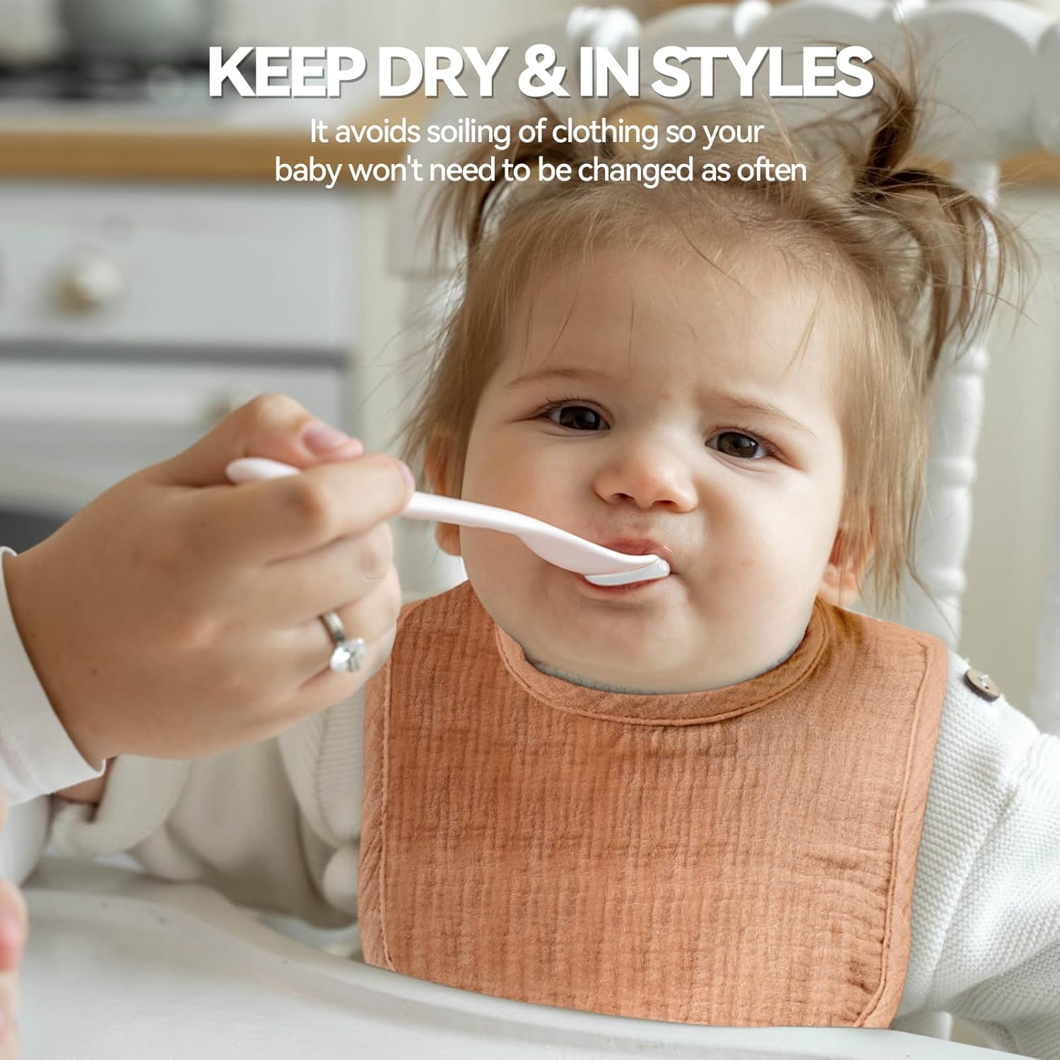 - Set of 6 Unisex Colors: Our toddler muslin bibs for boys and girls are carefully selected neutral colors, suitable for both boys and girls, and can be easily matched with any outfit. You can choose newborn bibs that suit your baby's outfit for the day.