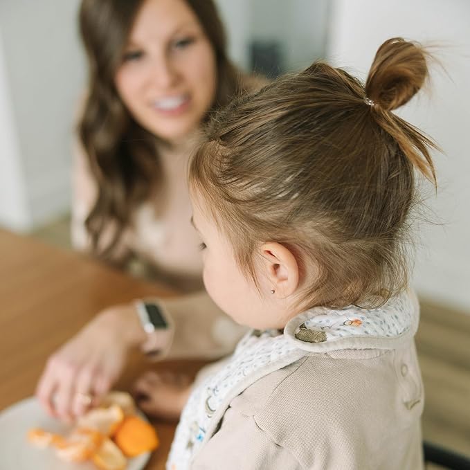 - SNAP TO FIT: Designed to accommodate growing babies, these 9" x 11.5" bibs feature an adjustable 3-snap closure. The snaps are on the side, ensuring a snug, comfy fit for infants and toddlers up to 3-years-old.